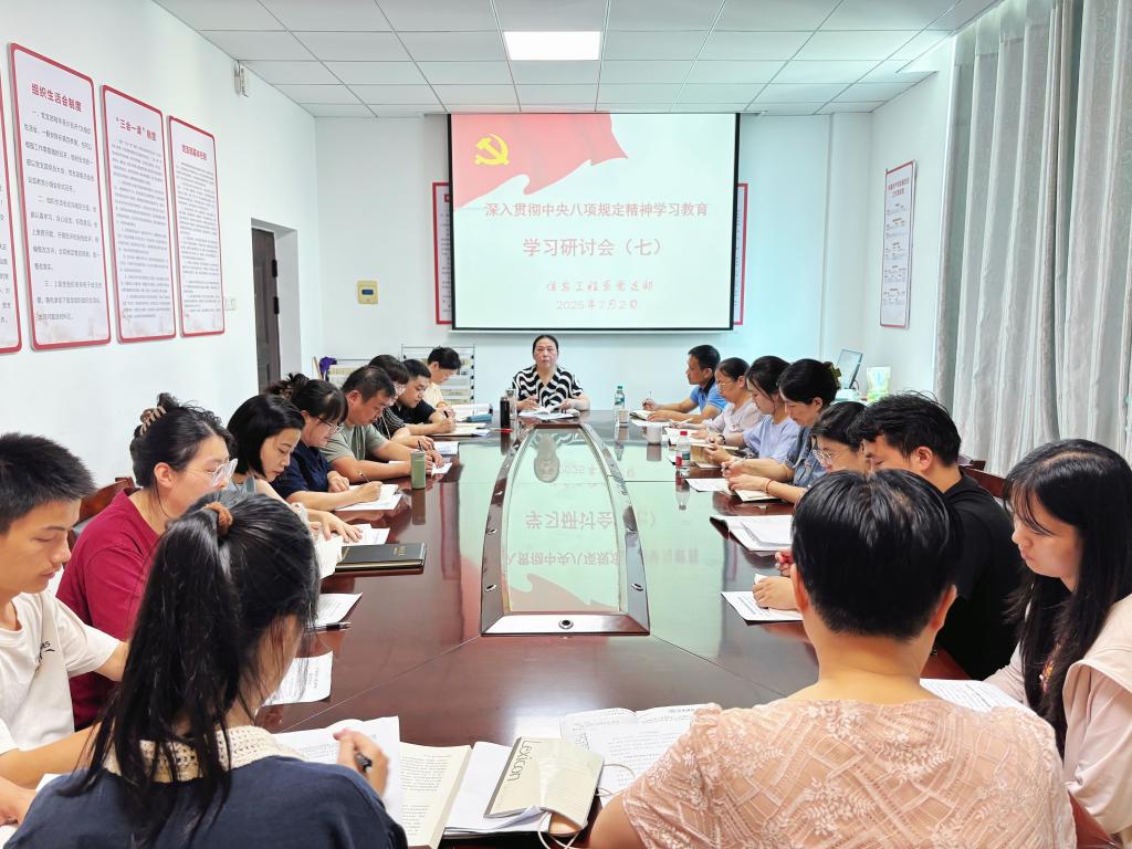 7月2日,信息工程系党支部组织全体党员在党员活动室开展了深入贯彻中央八项规定精神学习教育学习研讨会,生物工程系党支部派出人员到会旁听,会议由党支部书记主持。